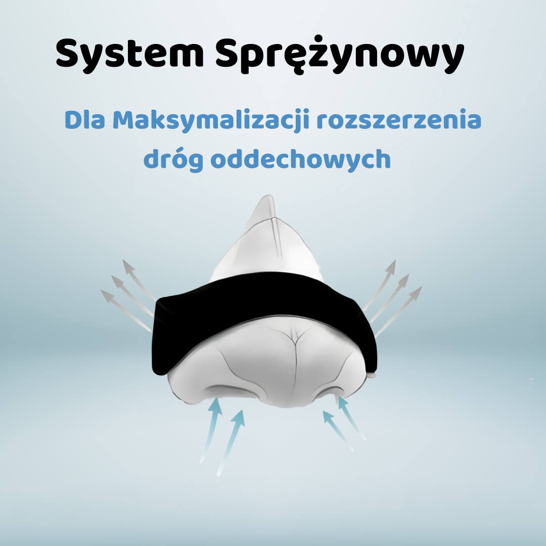 Unikalny mechanizm zwiększa przestrzeń w nozdrzach, dzięki czemu powietrze przepływa swobodniej — bez uczucia blokady.